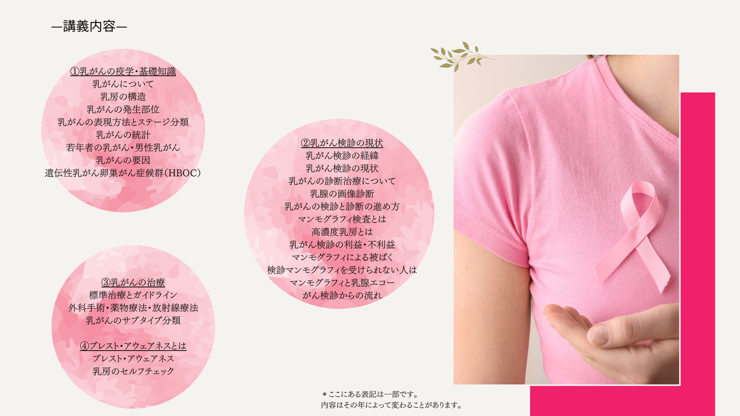 また、乳がん啓発が組み込まれた授業は、協会のHPでも紹介し、集客補助を致します。
