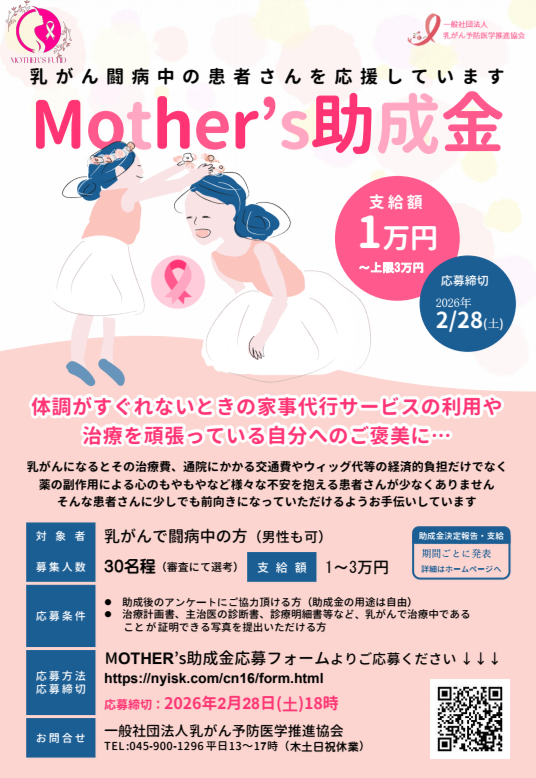 支給対象者: 乳がんで闘病中の方(男性も可)