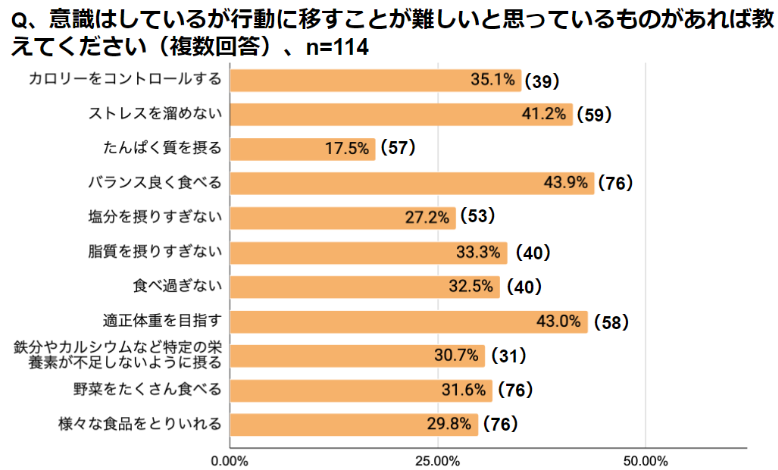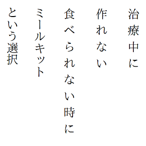 抗がん剤や放射線治療中は通常よりエネルギー量も必要です。加えて「栄養のため、体力のために」と食べることじたいがストレスに感じることもあります。体調が良いときには食事の栄養バランスを考え摂取することが望ましいですが、体調が悪いときにはその配慮も難しくなります。効率よく必要な栄養を摂取する工夫ができると良いのですが、「カロリーを考える」「バランスよく食べる」というのをストレスなく行動に移すことは多くの患者さんにとって「難しい」と感じられています。(オイシックス・ラ大地調べ)