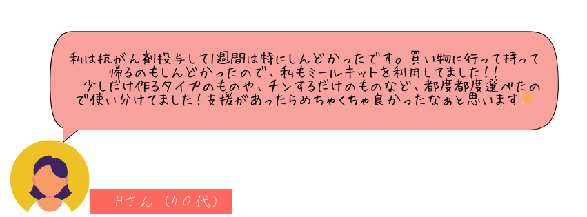 そんな患者さんたちの食事支援をしていくことで、少しでも治療中の心身にかかる負担軽減の一助になればと思います。