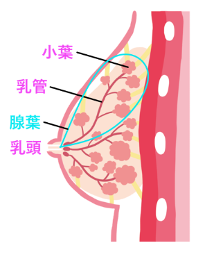 乳腺の組織にできるがんで、多くは乳管から発生しますが、