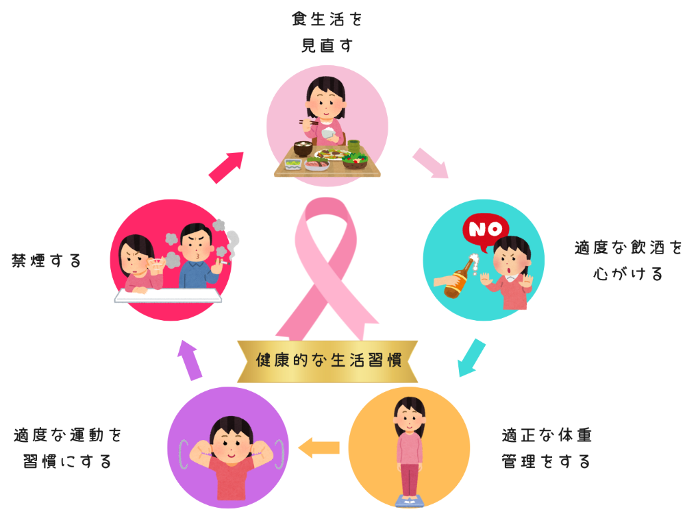 生活習慣を実践することでがんリスクは低くする可能性があるということがわかってきていますが、もちろんそれだけで完全に予防できるわけではありません。日頃からセルフチェックや検診を受けること、生活習慣を気を付けることなど、出来ることからでも良いので、自身の生活を見直していきましょう。