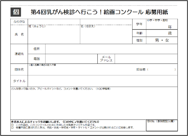 同時に、乳がん予防医学推進協会ホームページ(絵画コンクールページ)で発表します。