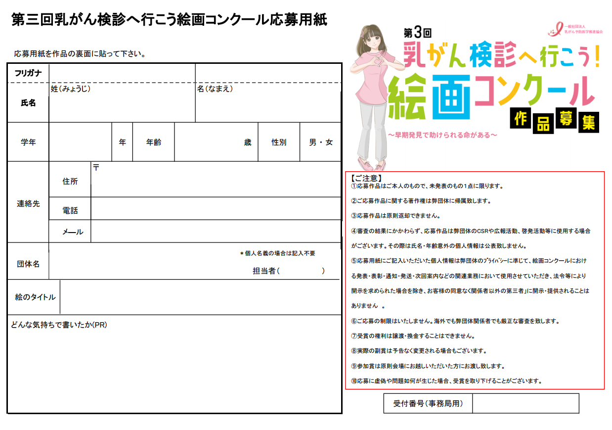 一般社団法人乳がん予防医学推進協会「絵画コンクール係」 まで