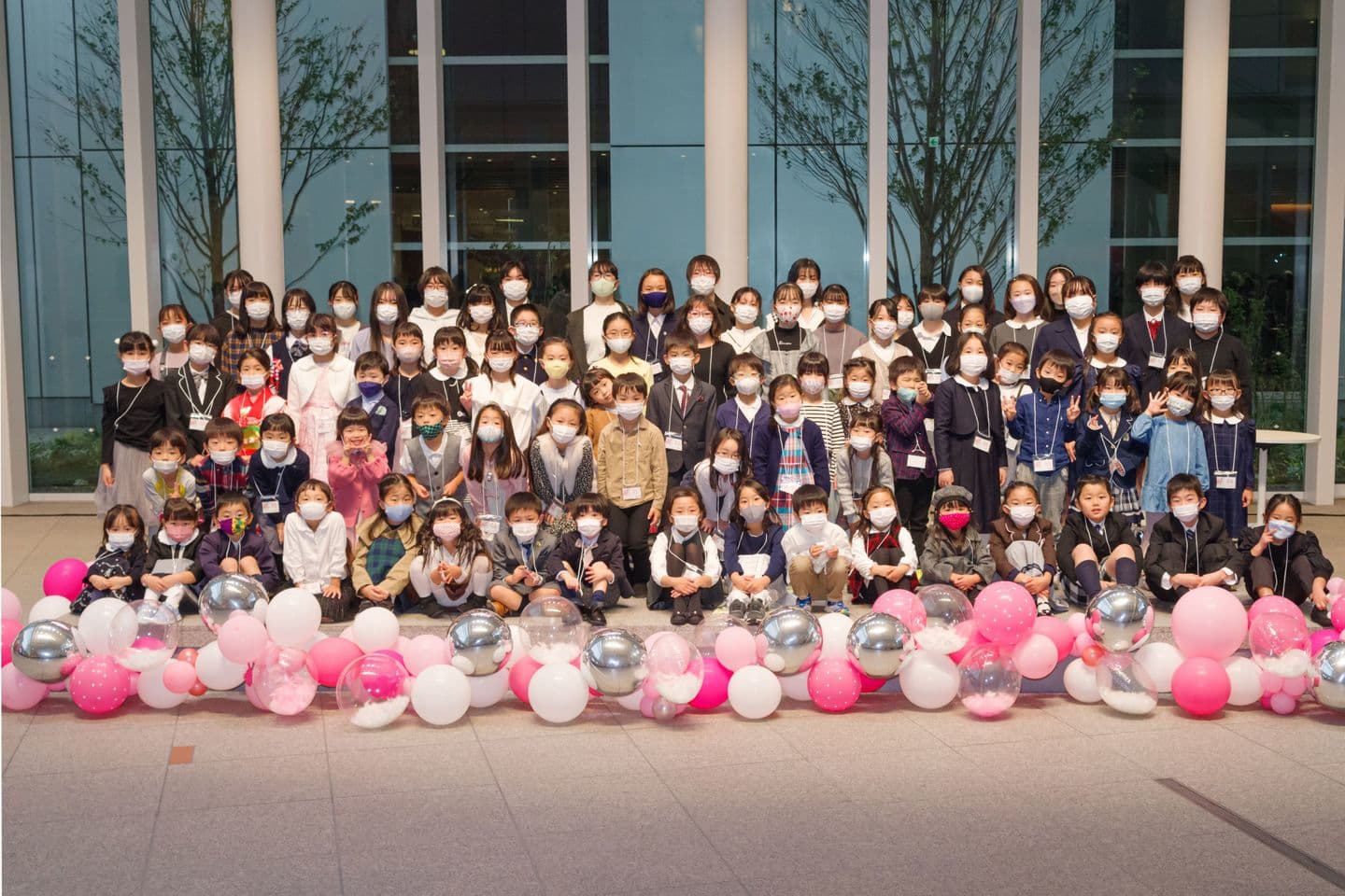 受賞者117名の内81名の子どもたちが駆けつけてくれました。会場は300名程の方々にお越しいただき、また展示場全体を風船で飾っていただいたりと、とても華やかでした。宣言が解除されたばかりのタイミングでもあり、久々に多くの人が集まった催しになったように感じます。今回は絵画展示ブース、学習ブース、式場ブースの3エリアに分けました。絵画ブースでは246名全員の絵画を飾り、学習ブースでは子ども達のQ&Aポスターやマンモグラフィの実際の画像、乳がんの触診モデルを置いて誰でもが触れられるように展示しました。エコーの機器をこんにゃくにあてるとどうなるか?の体験ブースを展開していただいたり、Q&Aのポスターからクイズラリーを行ったりして、子どもたちの関心を集めました。今回は小学生の子ども達からも「ピンクリボン」や「検診に行こう!」をテーマにした絵画も多数送られてきて、とても考えさせられる作品が多かったです。